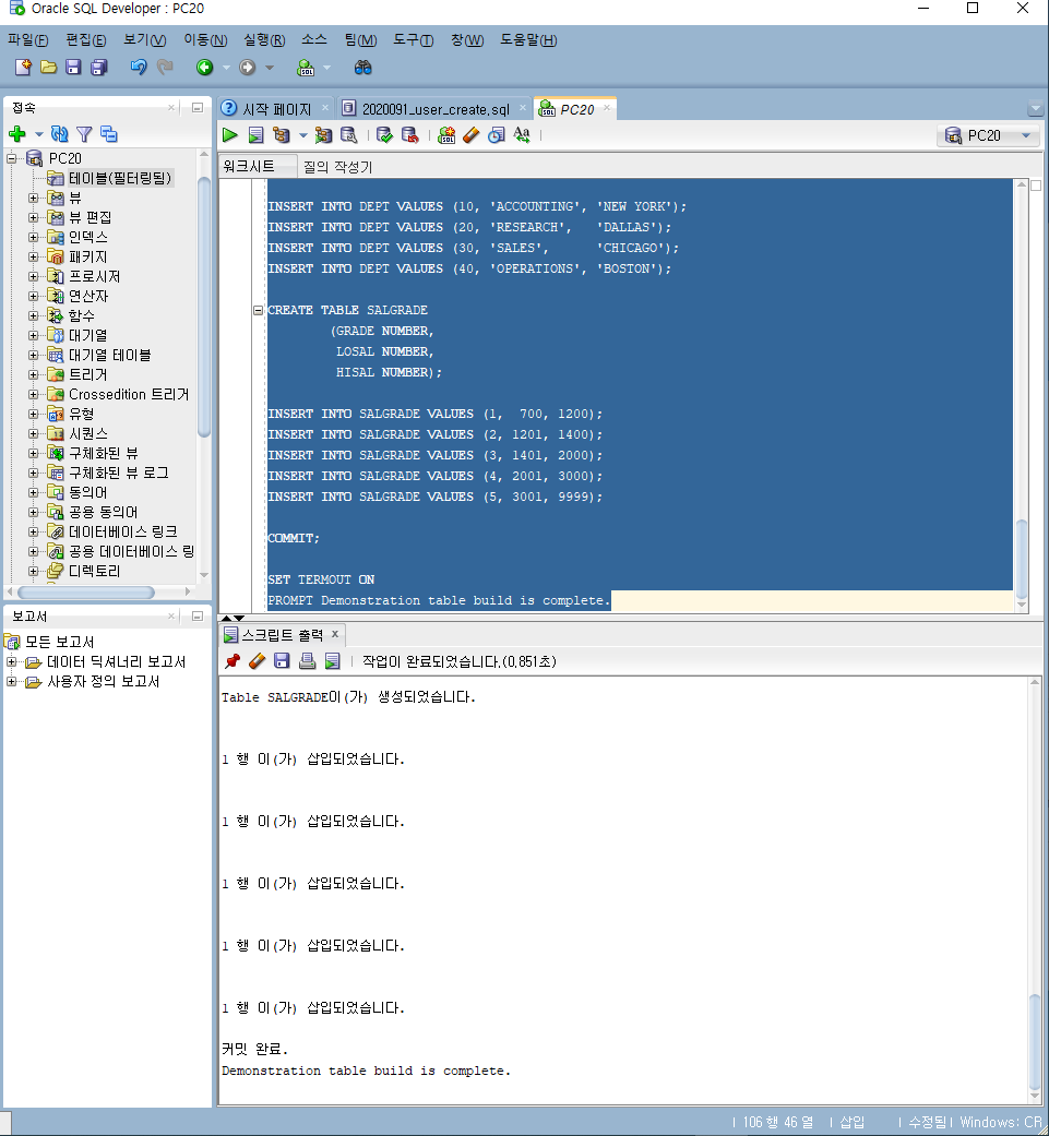 -- This script creates the SQL*Plus demonstration tables in the