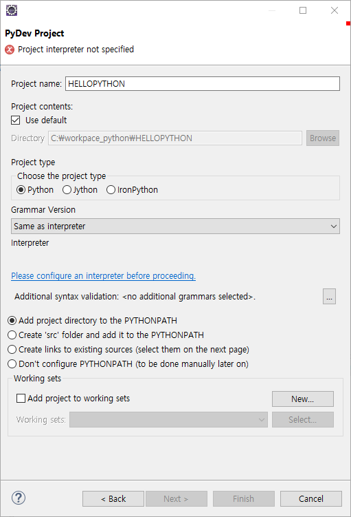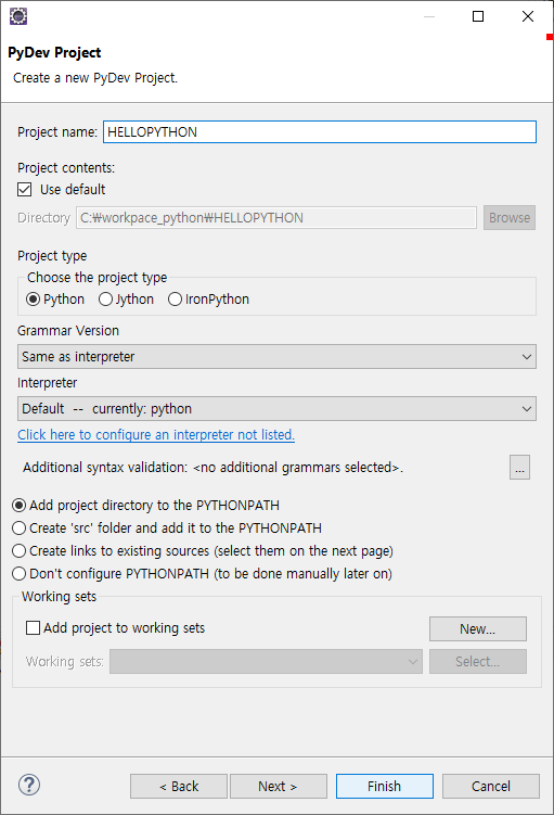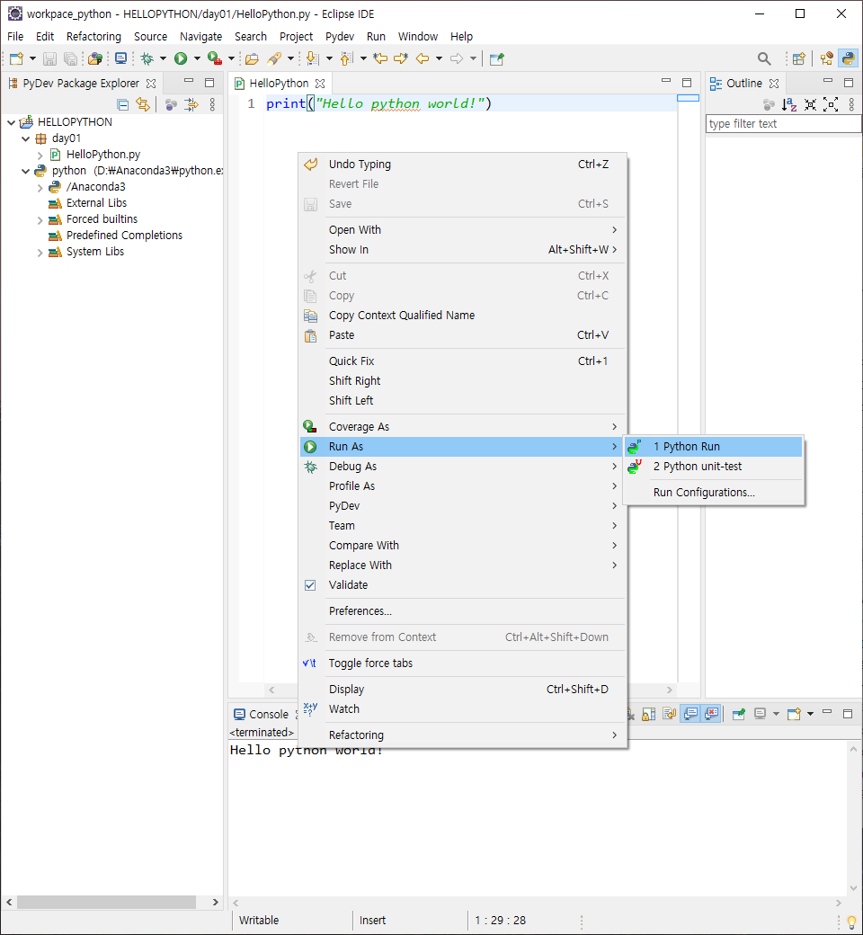 파이썬 설치 완료 확인을 위한 파이썬 프로젝트 생성~