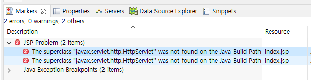 jsp 생성 이클립스 에러 해결 The superclass "javax.servlet.http.HttpServlet" was not found 본문