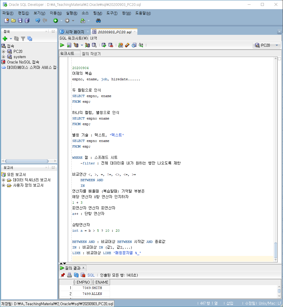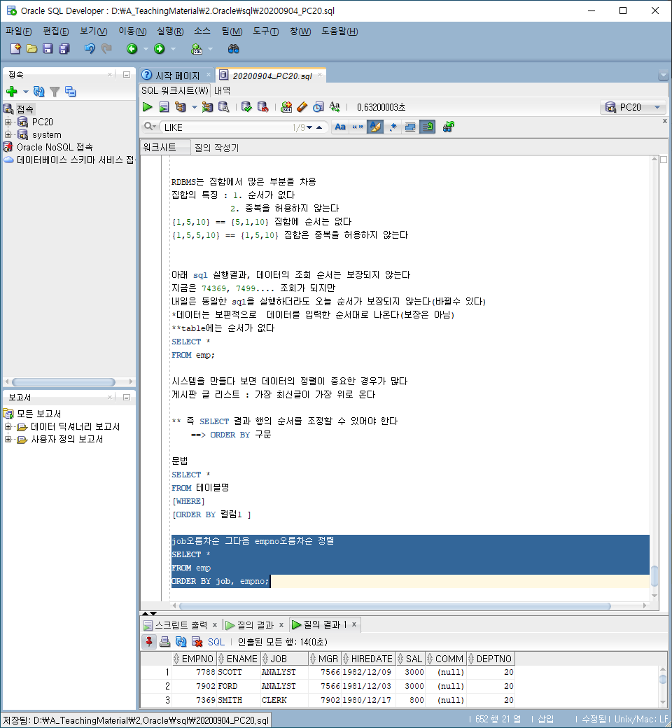 [sql] 20200904 sql 복습/null/where/in/연산자우선순위/정렬/ASC/DESC/ORDER BY/ROWNUM/INNER-v 본문