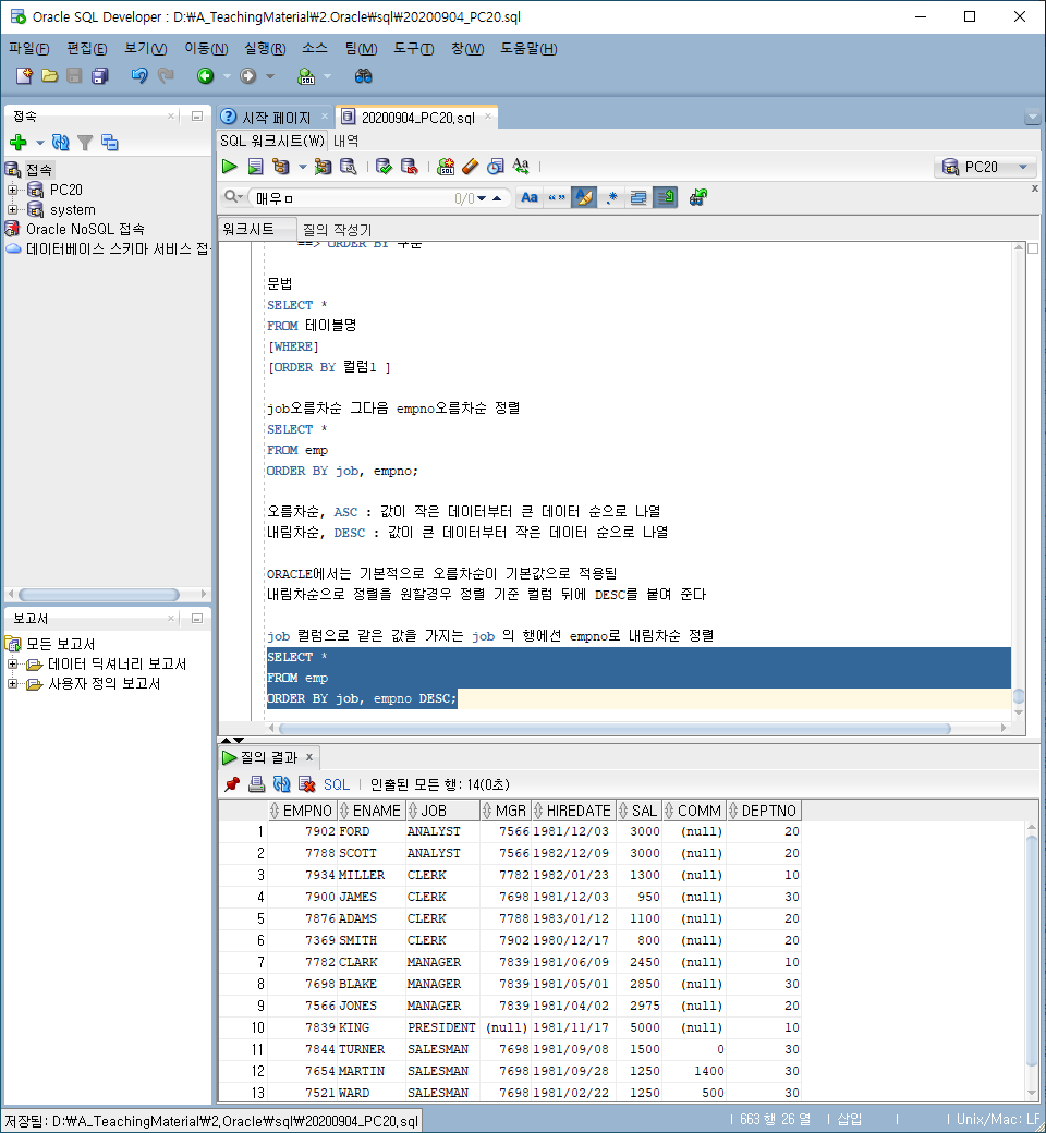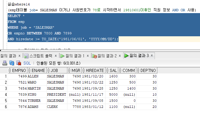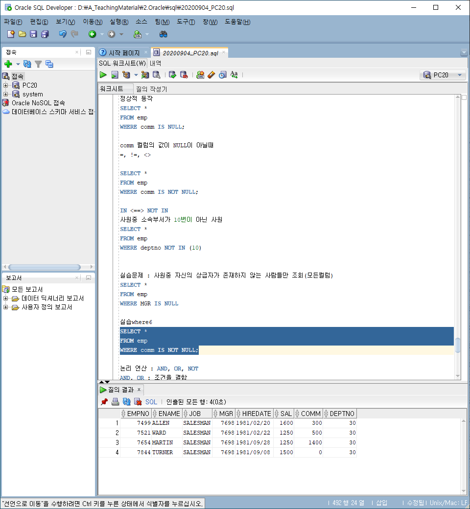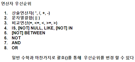[sql] 20200904 sql 복습/null/where/in/연산자우선순위/정렬/ASC/DESC/ORDER BY/ROWNUM/INNER-v