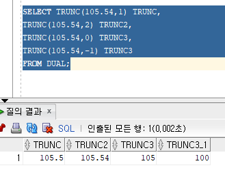 TRUNC 함수는 F에 지정된 단위로 절삭 한다