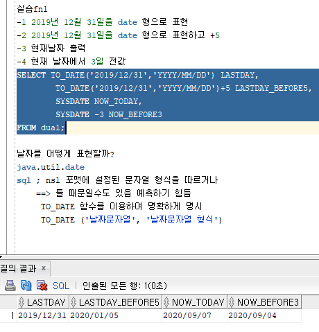 [SQL] 20200907 where/rownum/length/DUAL TABEL/CONCAT/SUBSTR/LENGTH/INSTR/LASTDAY 본문