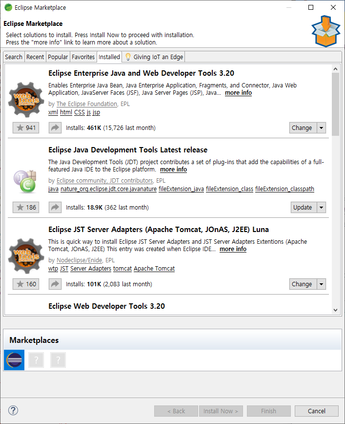 2. 탭 부분 Installed -> Eclipse Java EE Developer Tools xxx