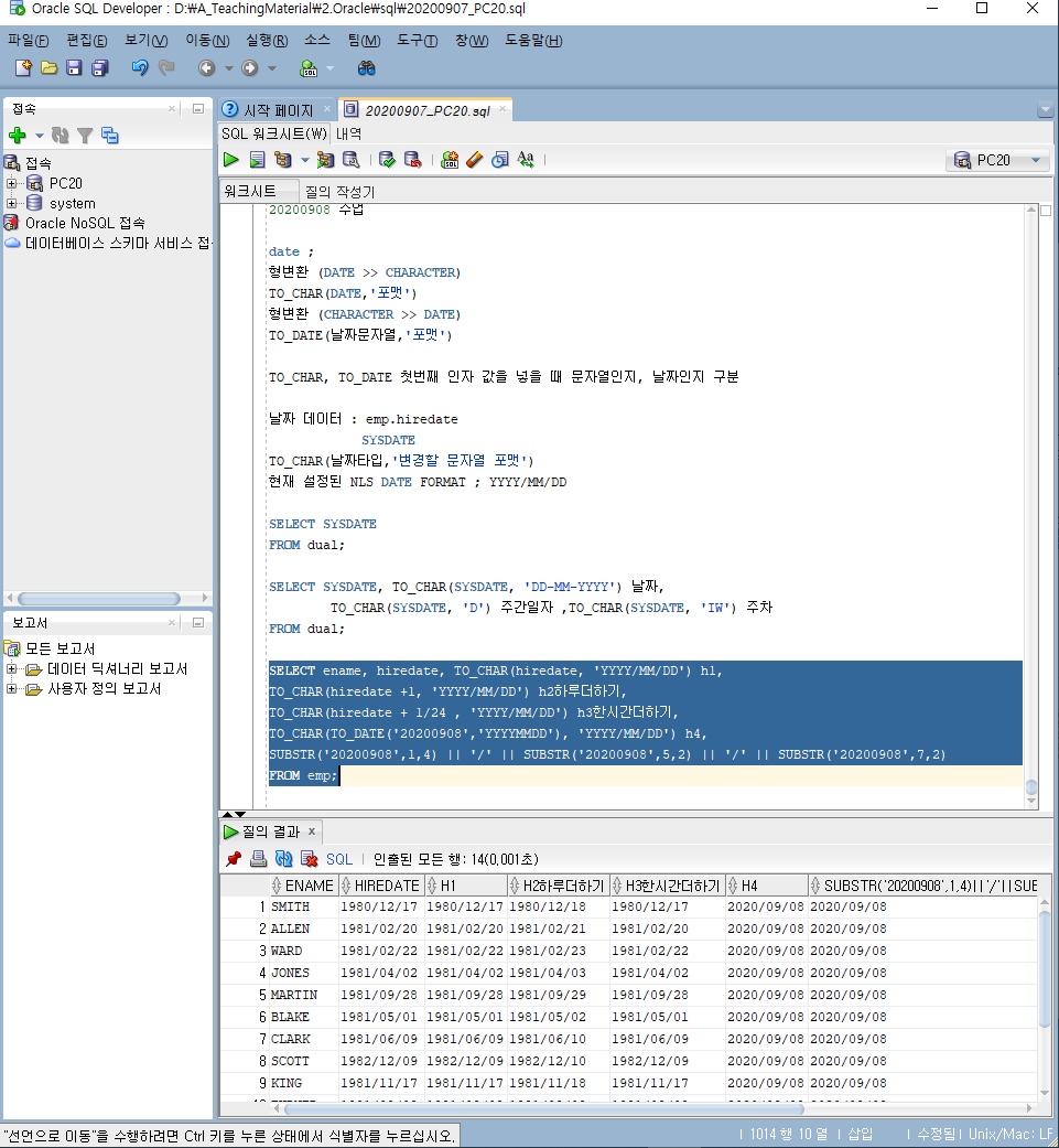 [SQL] 20200908 sql 날짜/형변환(to_char/to_date)/날짜관련함수(MONTHS_BETWEEN/ADD_MONTHS/NEXT DAY)/explain/실행계획/NULL/NVL