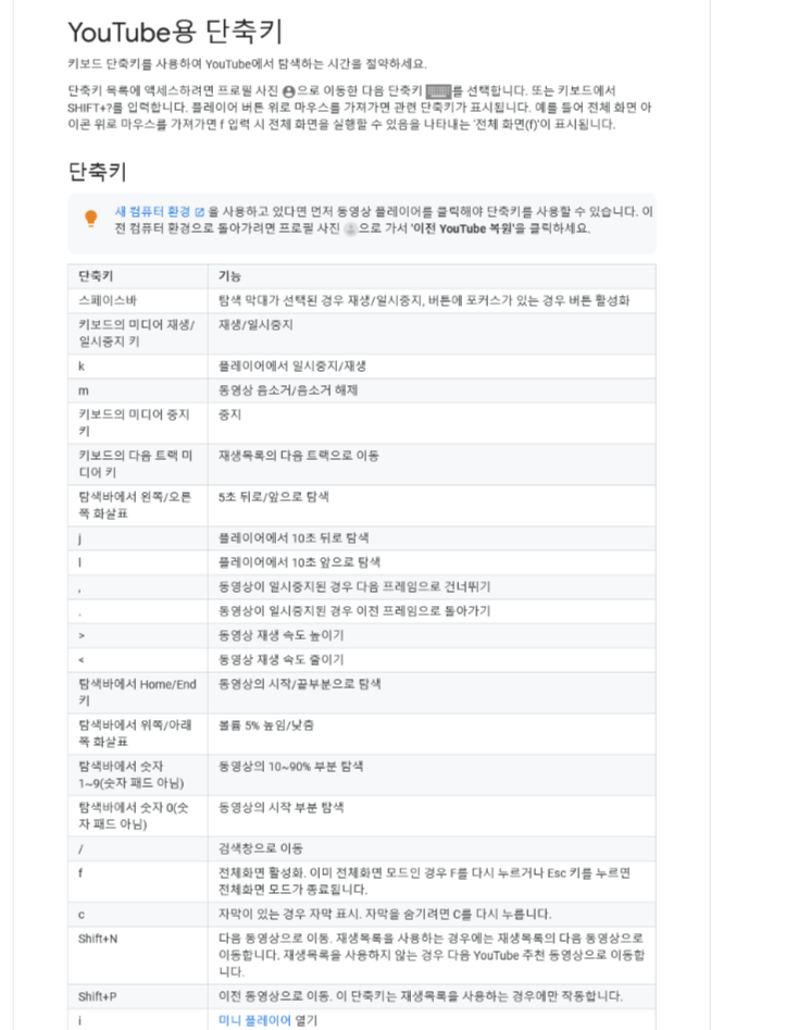 유튜브 단축키. 본문