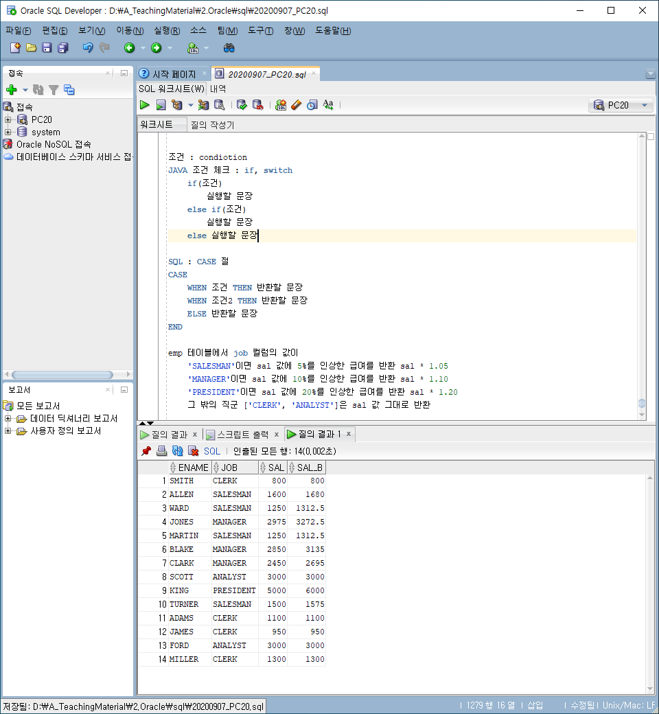 - - DECODE(VALUE, IF1, THEN1, IF2, THEN2...) 형태로 사용 할 수 있다.