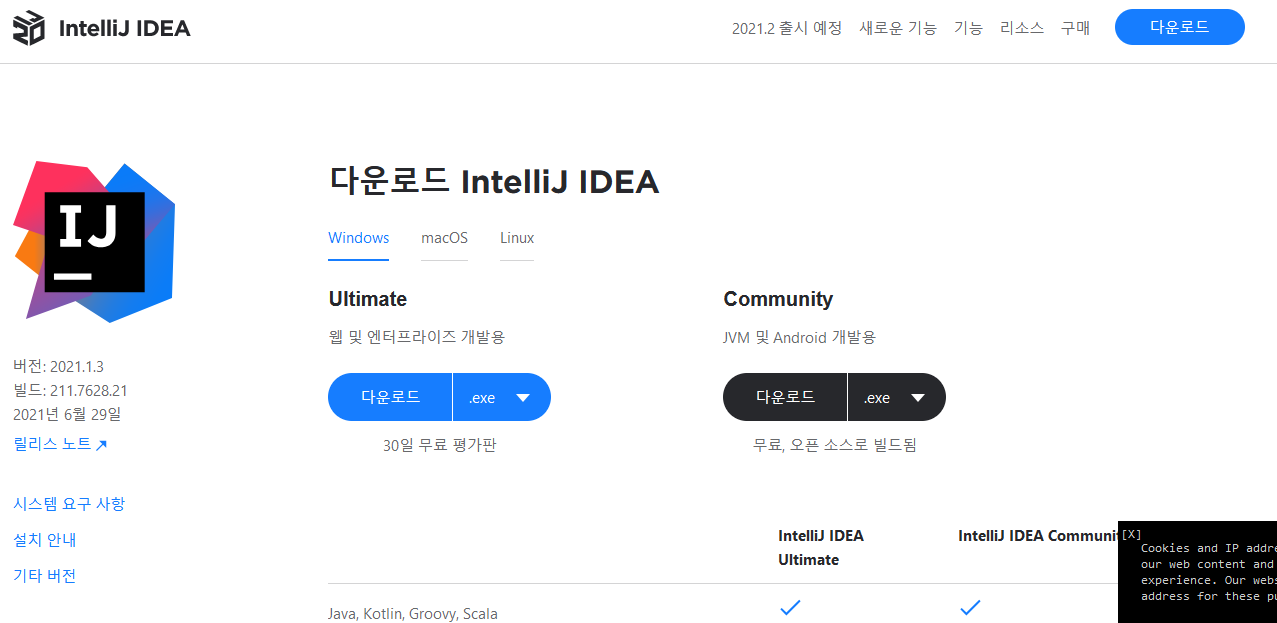 https://www.jetbrains.com/ko-kr/idea/download/#section=windows