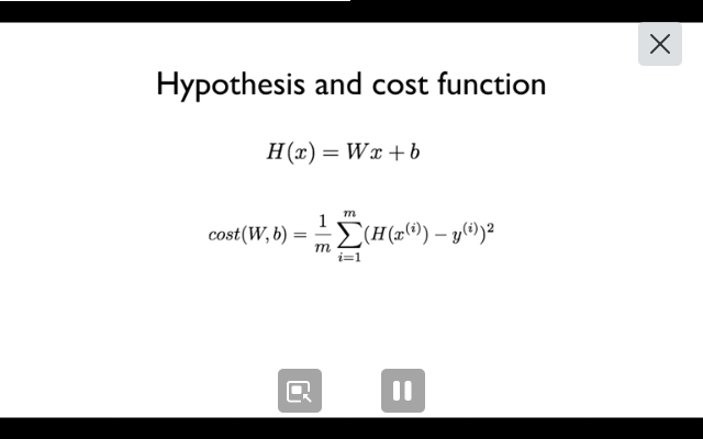 * 학습을 한다. W와 b를 조절해서 cost를 낮게 하는 것
