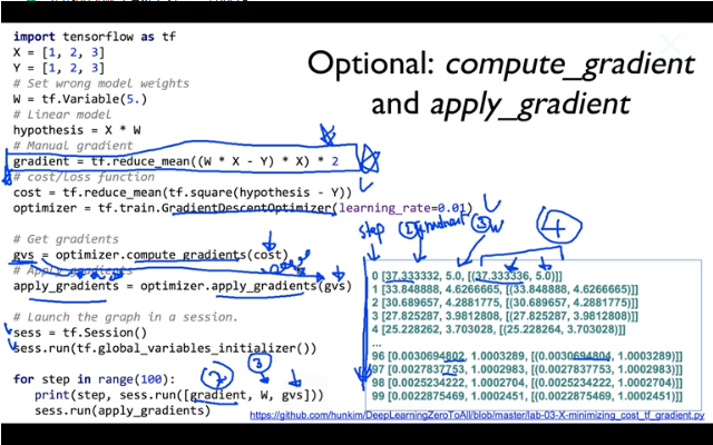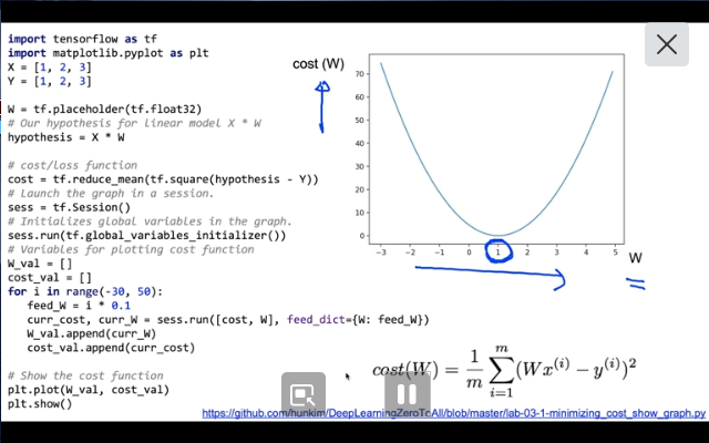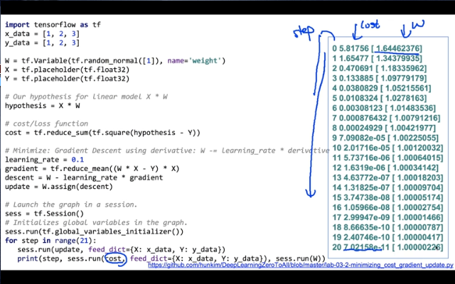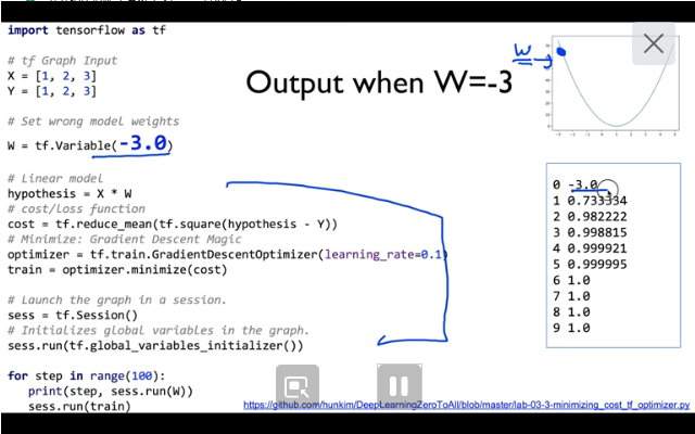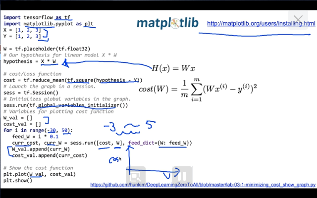 [EDWITH_머신러닝과 딥러닝 BASIC] Linear Regression 의 cost 최소화의 TensorFlow 구현(new)