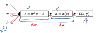 로지스틱 회귀에서 도함수 계산을 위해 역방향 계산을 한다. (da, dz)