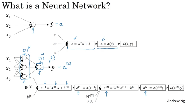 - 특성 x와 변수 W와 b 를 입력 z^[2]계산. (신경망의 또다른층)