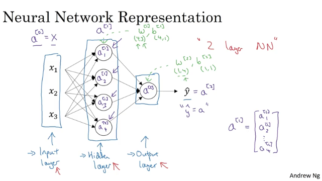 - 입력층과 출력층은 연관된 매개변수가 있다. (입력층의 경우 w^[1], b^[1], 출력층의경우 w^[2], b^[2]