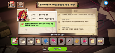 승객 쿠키들 조사하기 1은 뱀파이어맛 쿠키를 조사합니다. 총 2개의 추리가 진행됩니다.