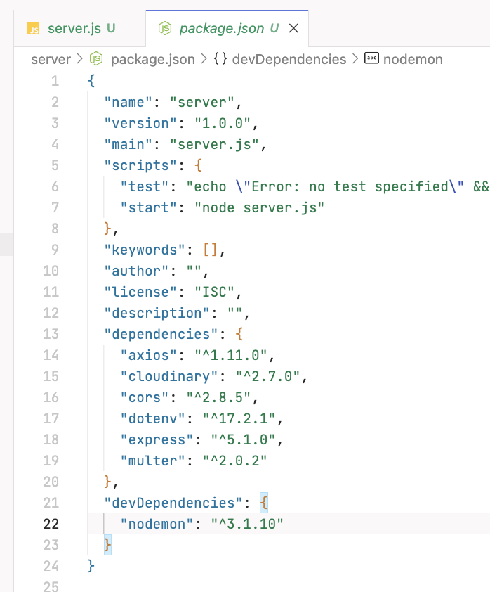 $ npm install express dotenv cors axios cloudinary multer