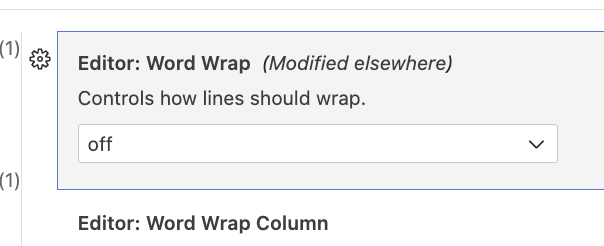 Editor 항목에 word Wrap 항목이 검색된다.